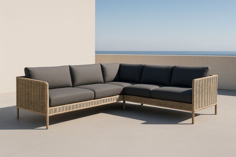 Materiale:Struttura in polietilene sintetico, cuscini con rivestimento in poliestere e imbottitura in schiuma di poliuretano